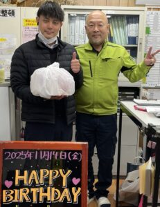今月の14日(金)に安全担当の『ちゃーりー』がお誕生日を迎えました!!