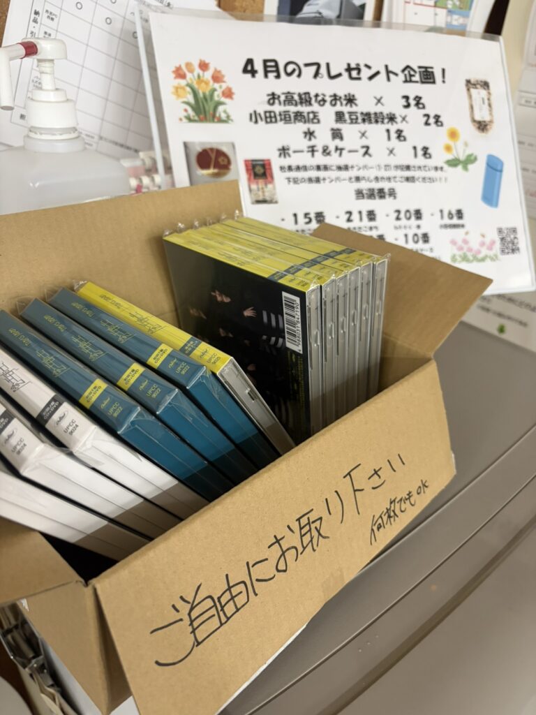 ご自由にどうぞ形式でダンボールに入れて置いておくと、意外とみなさん、これ何?!と声をかけてくださり、