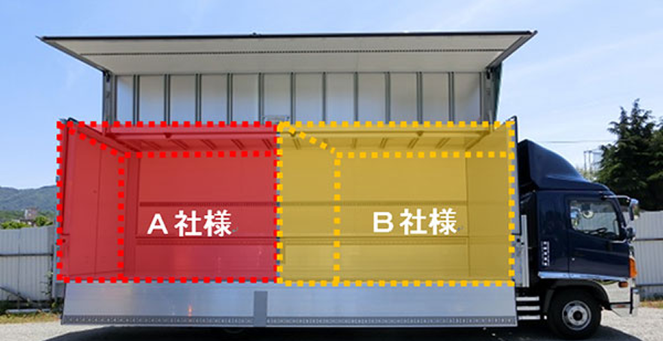 大型車両や4t車両で同一方面(たとえば、関東方面、九州方面、北陸方面など)のお荷物を他社様のお荷物2~3件と一緒に運ぶ輸送便です。